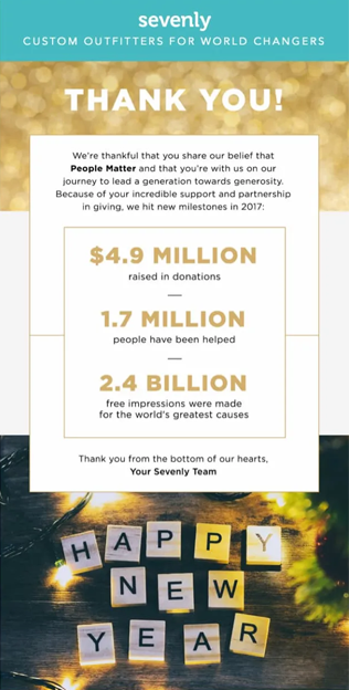 Implementation tip: Highlight the cause in your email and landing page, tally current impact (“We’ve donated 500 meals so far”) for social proof.