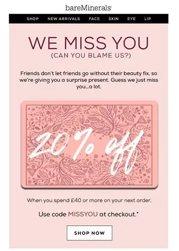 Example to include: December 29: “We missed you! Re-activate your account with a one-time 25 % off – this week only.”