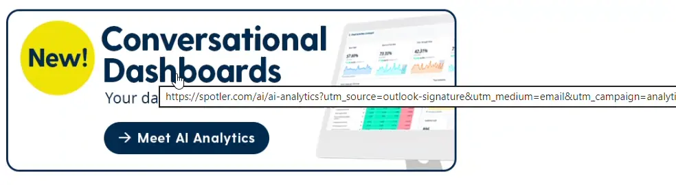 A good place to add tracked links. A UTM-tagged banner in your team’s email signature turns regular emails into another trackable marketing touchpoint.