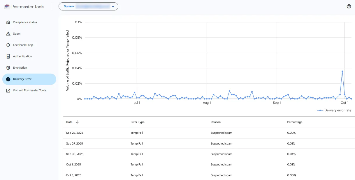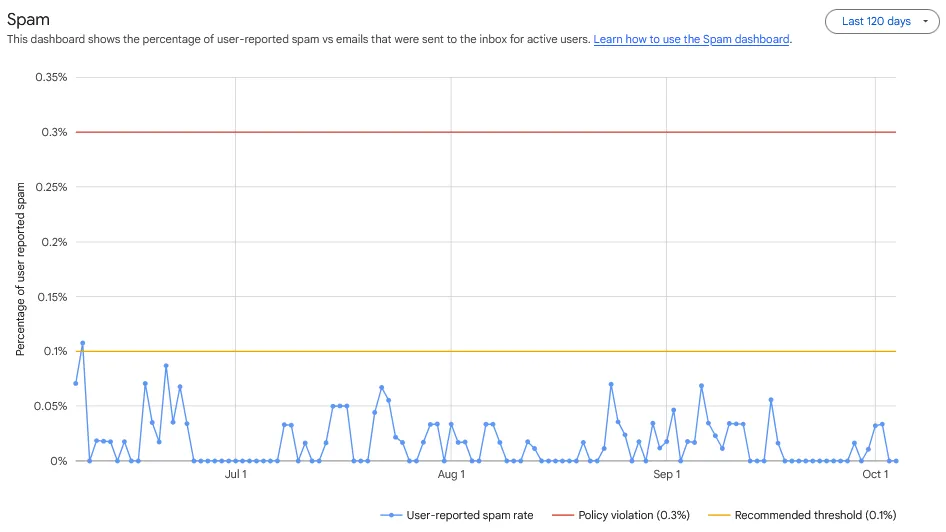 If you aren’t familiar with Postmaster Tools already, it’s an under-appreciated deliverability hero. Rather than forcing businesses to keep up with individual spam reports, Postmaster tools reports them en masse, tied to your sending activity. This allows you to see campaigns that riled your audience, without pointing the finger at individuals. More privacy for them, more actionable insights for you. Everybody’s better off.