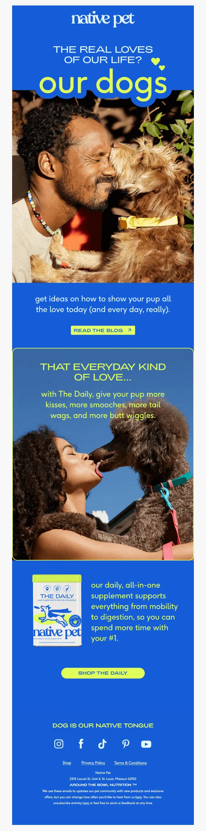 Content that makes Valentine’s Day personal and recognisable works well by highlighting the bond with their pet as a full member of the family. Think of a Valentine’s message where the pet plays a central role, with attention to care, treat moments and daily routines. Messages such as “the real loves of our life, our dogs” or “who is always happy when you come home?” fit perfectly.