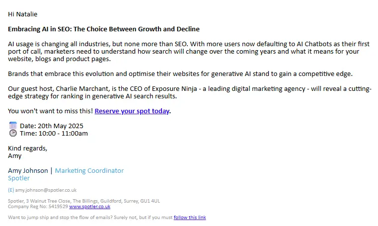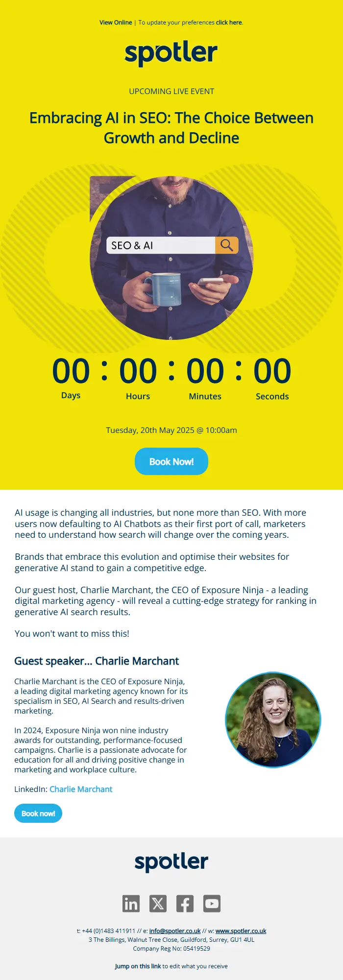 | Discover Spotler Analytics in our live webinar on 16 July. | Join our 16 July webinar to watch Spotler Analytics rewrite reporting. |