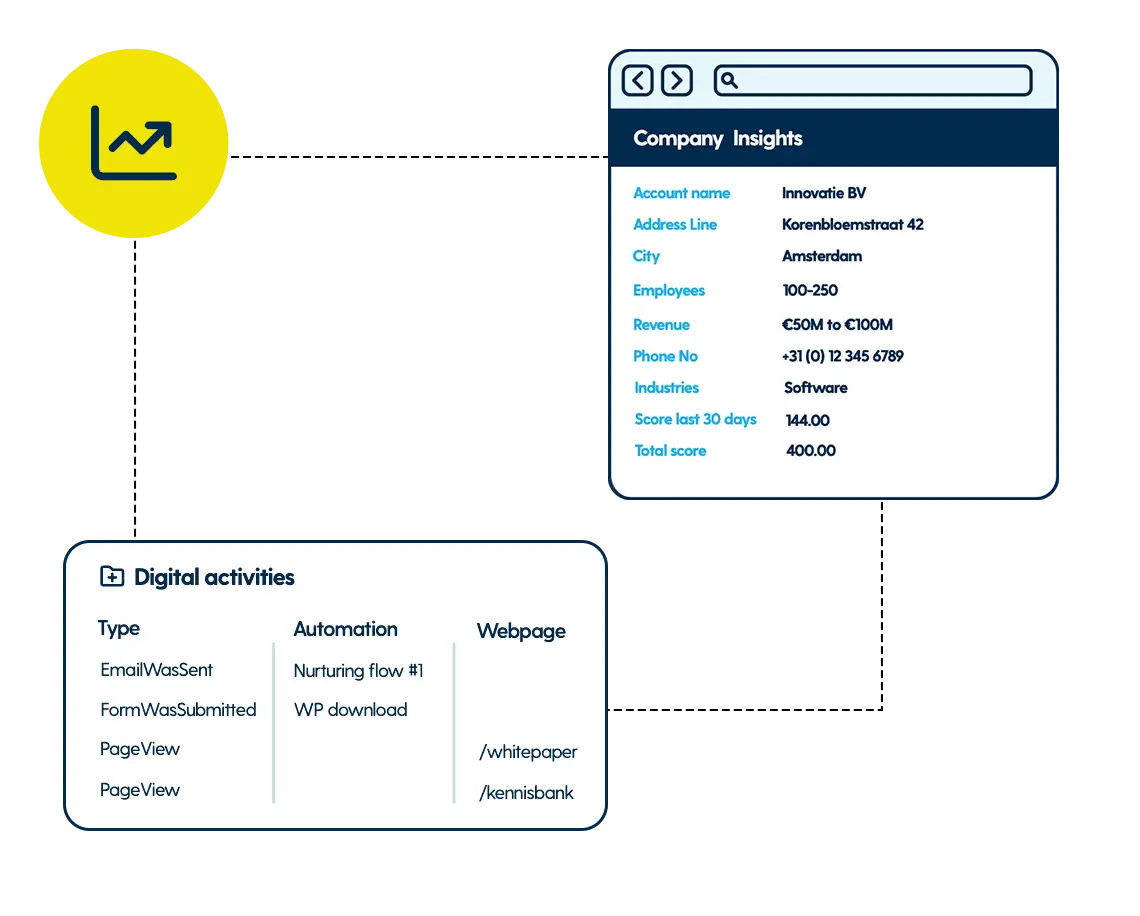 With Leadinfo connected to Spotler, teams work from the same system and the same signals. Website behaviour, company insights and CRM data come together in one central database, without manual work or extra tools. This enables more accurate lead scoring, timely sales alerts and smarter automation across the funnel. The result? Campaigns aligned with ideal customer profiles, clearer priorities, and more confident conversations with the companies that matter most.