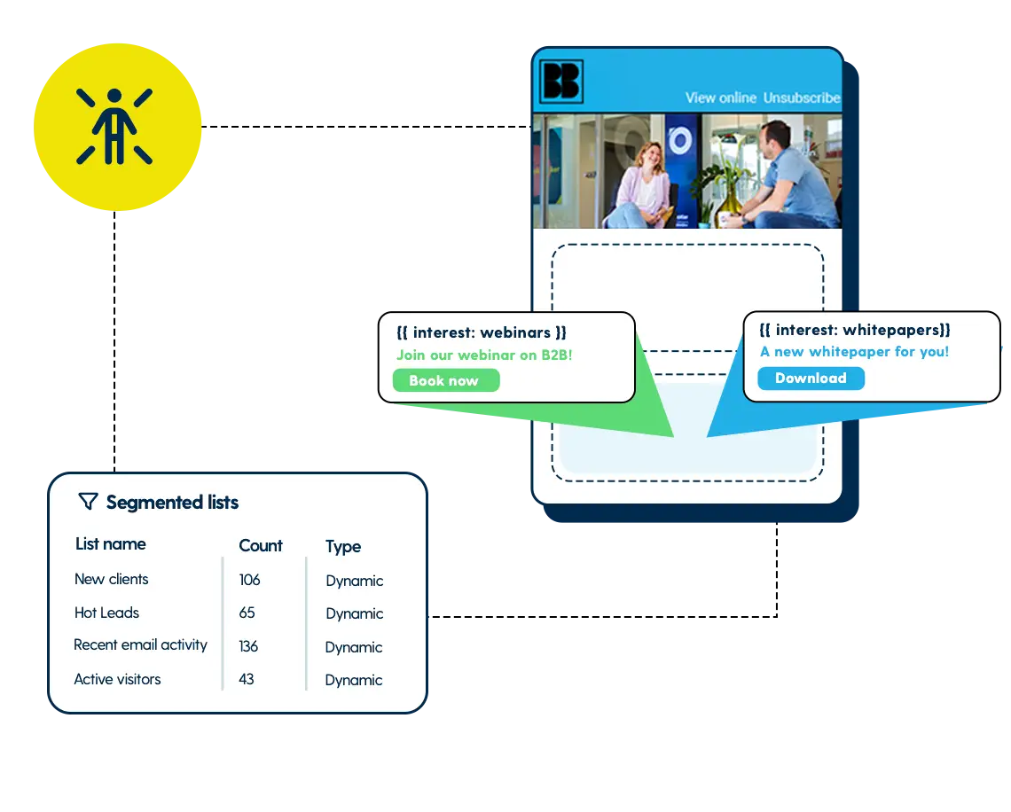 Let marketing and sales teams act on real behaviour instead of assumptions. Marketers can create segments based on company visits, trigger lead scoring automations when a pricing page is viewed or start a personalised email flow when interest increases.