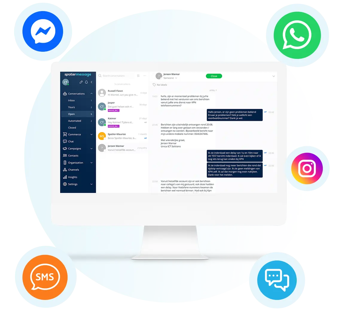 Spotler Message is een omnichannel platform waarmee je via WhatsApp, SMS, Messenger en andere kanalen kunt communiceren met je klanten. Je kunt er gesprekken mee automatiseren, campagnes versturen en klantdata koppelen aan je CRM of marketingplatform.