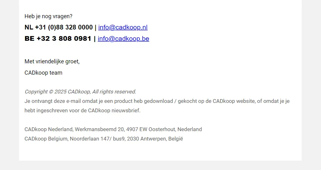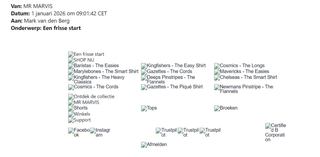 Niet alle e-mailprogramma’s laden afbeeldingen automatisch. Als je e-mail volledig leunt op visuals, kan de boodschap daardoor verdwijnen. Een goede mailing blijft begrijpelijk, ook wanneer afbeeldingen niet worden geladen.