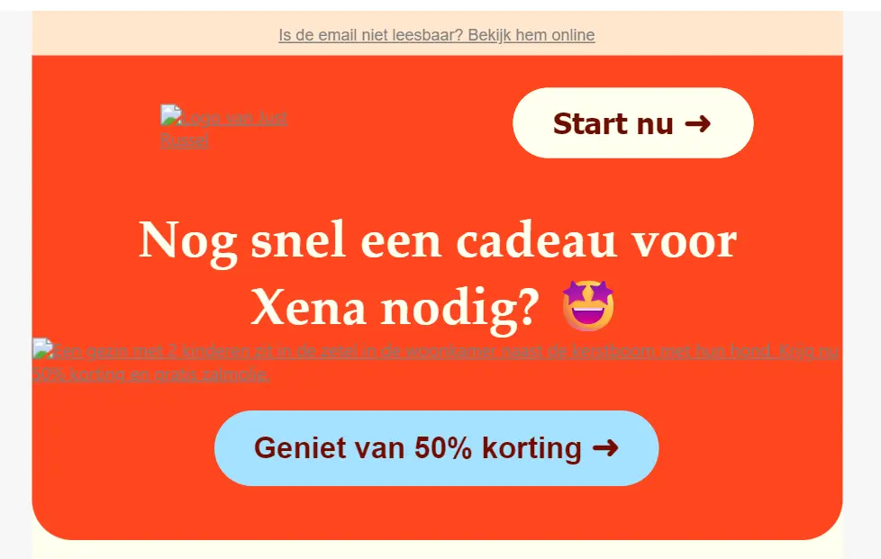 Een e-mail die voornamelijk uit afbeeldingen bestaat, kan problemen opleveren: langere laadtijden, slechtere leesbaarheid en soms zelfs afleverproblemen. Tekst zorgt voor context, overtuiging en toegankelijkheid.