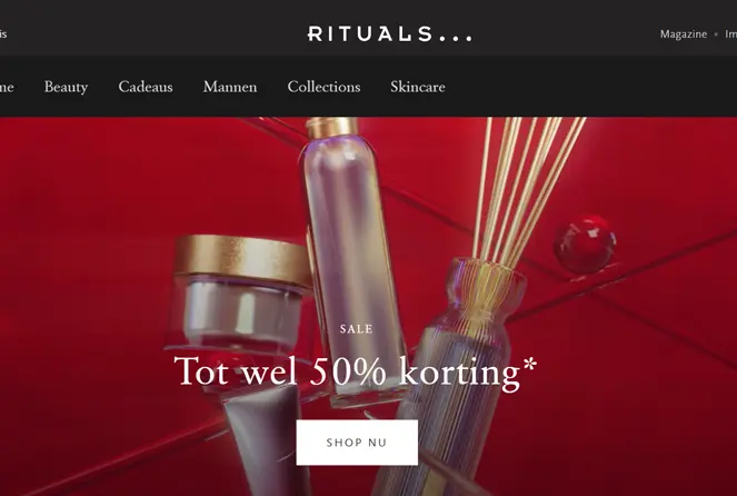 In onderstaand voorbeeld van Rituals zie je dat ze in hun e-mail design een duidelijk herkenbare stijl hanteren: Het logo bovenaan, lettertype met schreef in de headers en een duidelijke button.