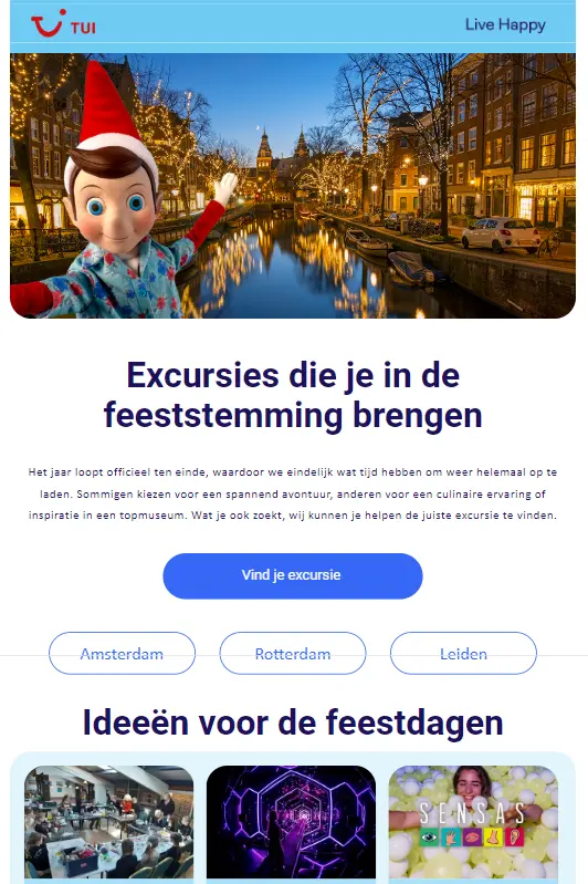 Interactiviteit in e-maildesign vraagt om actieve deelname van de lezer. Denk aan uitklapbare teksten, menu’s of carrousels waarmee extra content zichtbaar wordt. Dit kan de betrokkenheid verhogen en voorkomt dat e-mails onnodig lang worden, vooral op mobiel.