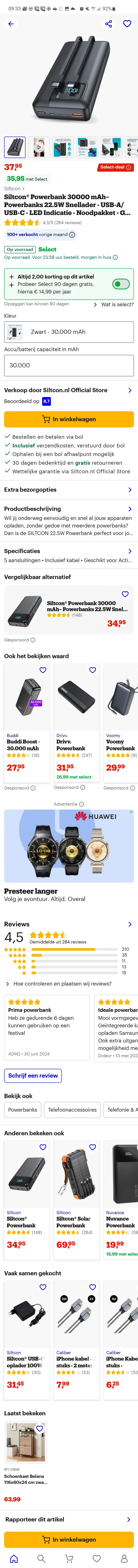 Je vindt op de PDP van Bol ook reviewsterren, speciale kortingsabonnementen, bezorgopties, alternatieve producten, een extra productcarrousel, advertenties, een uitgebreid reviewrapport, een link naar de resell-partner, een link naar rapportagemogelijkheden over het getoonde product plus een button naar een speciale reviewpagina.