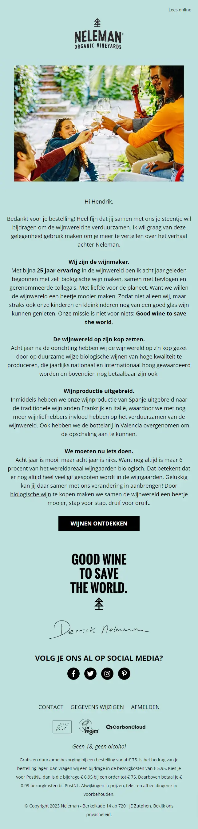 In de mail van Neleman die wij in deze guide hebben opgenomen, staat zelfs ‘Ik wil graag van deze gelegenheid gebruik maken om je meer te vertellen over het verhaal achter Neleman’. En die ‘ik’ is Derrick Neleman, oprichter en grote promotor van Neleman.