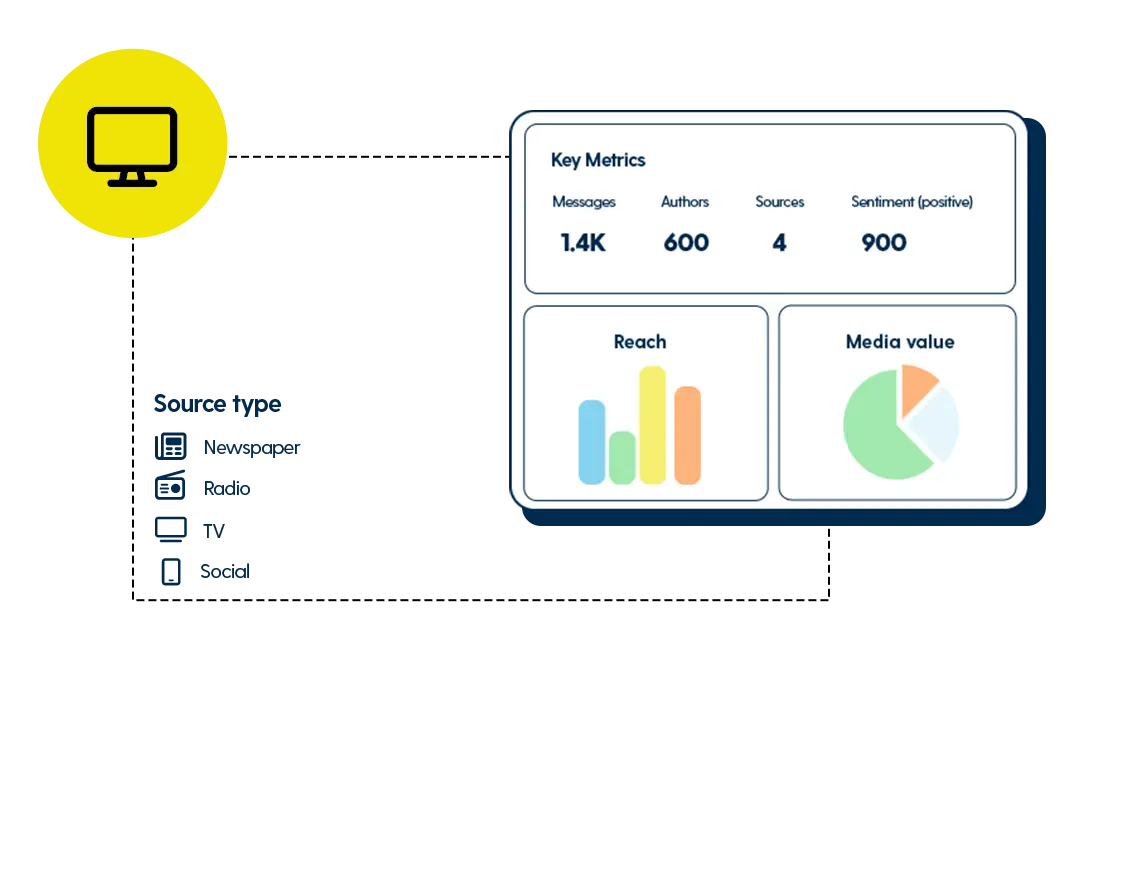 In de Media Monitor komen social media, (premium) online en offline media zoals print, radio en TV samen in één overzichtelijk dashboard. Zo krijg je een volledig en realtime beeld van wat er écht speelt op alle kanalen.